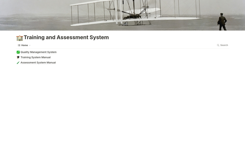 This is a Notion wiki-based page containing a system manual designed for a maritime training institution.